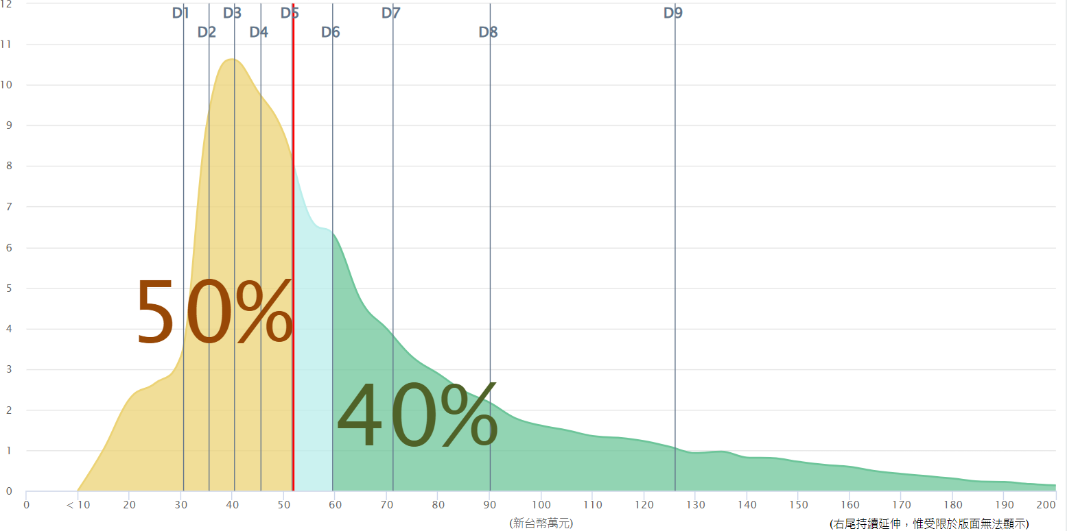 在台灣,111 年受雇群眾的薪資中位數落在年薪 51.8 萬元,換算月薪大概是 4.3 萬元。 (見下圖,來自行政院主計總處)