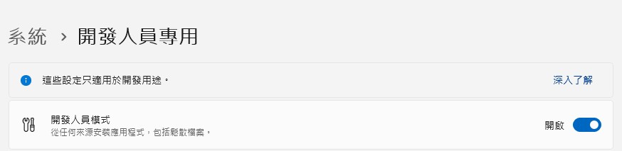 如果真需求全域安裝套件,可以打開電腦的開發者模式。