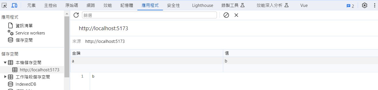 - 先手動在加入一組 key-value ("a":"b") 在 localstorage 中。